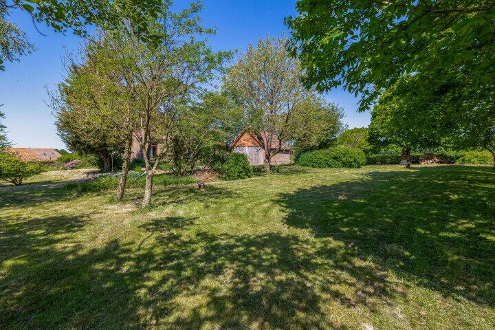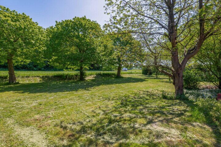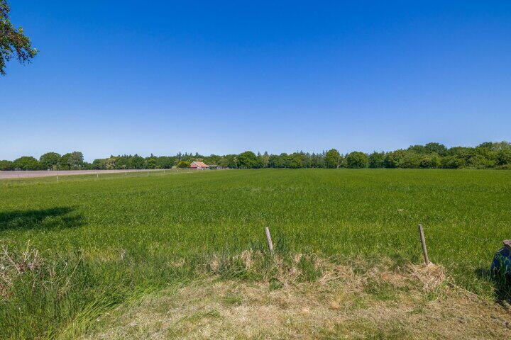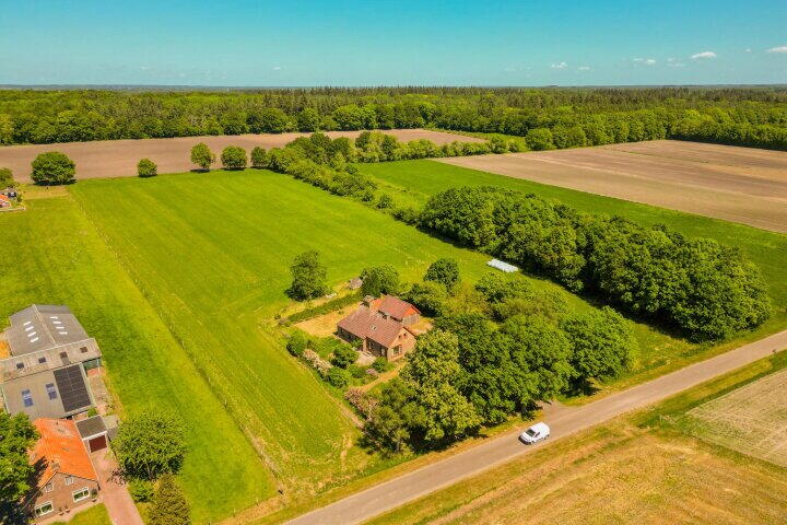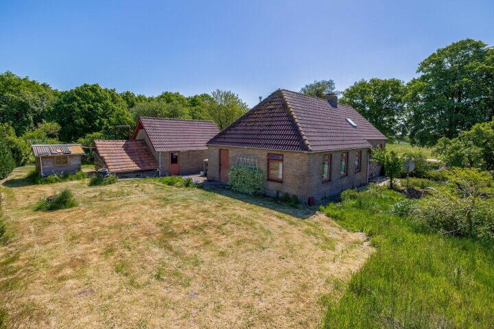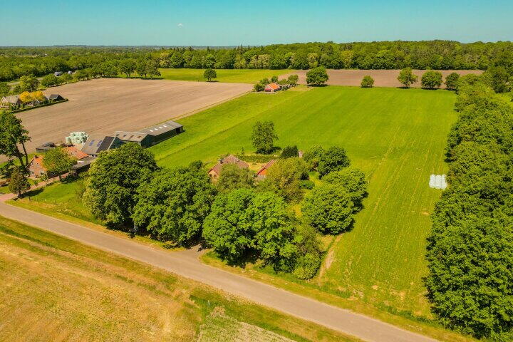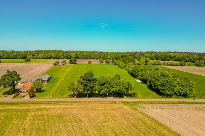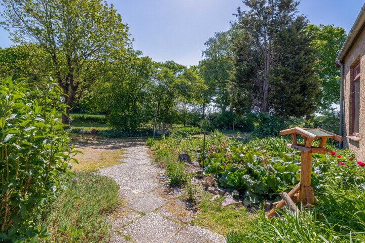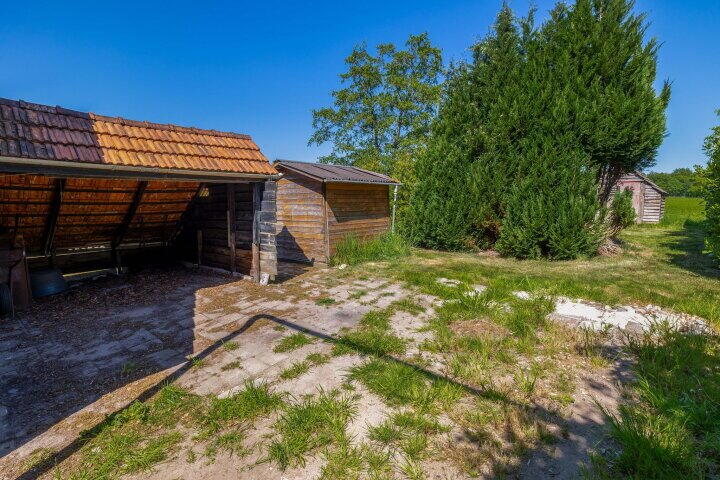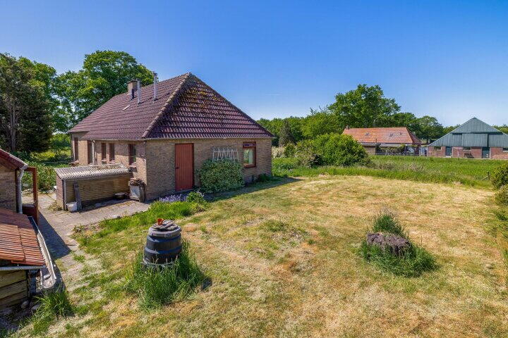 De riante tuin rondom biedt volop mogelijkheden met leuke hoekjes en genoeg ruimte voor meerdere terrassen en bijvoorbeeld een moestuin. Het terrein is rijk uitgerust met diverse opstallen. Zo vind je er een grote vrijstaande, deels stenen schuur met daarachter een overkapping voor opslag. Verder staan er nog 2 kleinere houten schuurtjes. Diverse grote en kleinere bomen en struiken zorgen voor schaduw en afscheidingen. De rest van het uitgestrekte terrein bestaat uit grasland, een prachtig groen decor dat rust en ruimte ademt.