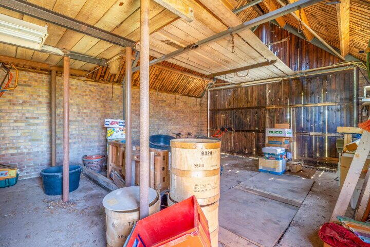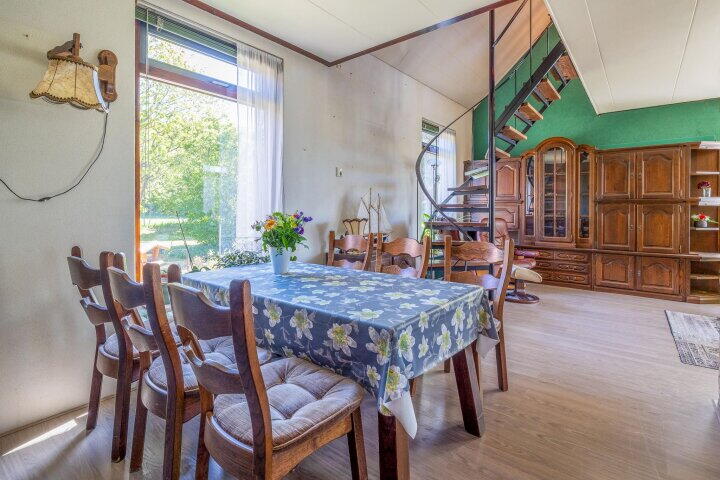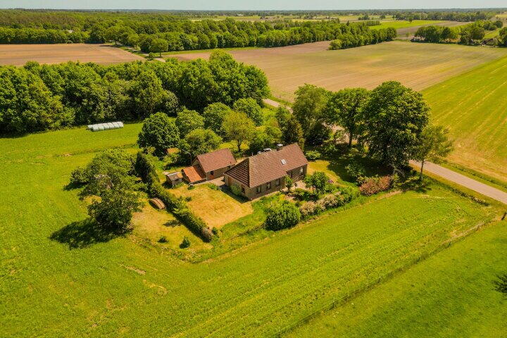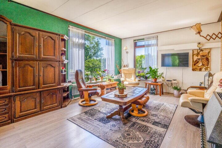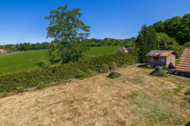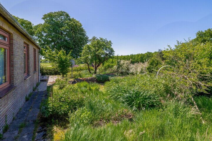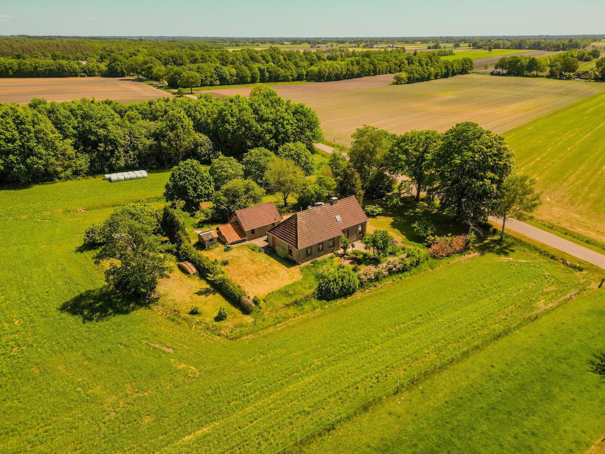 De riante tuin rondom biedt volop mogelijkheden met leuke hoekjes en genoeg ruimte voor meerdere terrassen en bijvoorbeeld een moestuin. Het terrein is rijk uitgerust met diverse opstallen. Zo vind je er een grote vrijstaande, deels stenen schuur met daarachter een overkapping voor opslag. Verder staan er nog 2 kleinere houten schuurtjes. Diverse grote en kleinere bomen en struiken zorgen voor schaduw en afscheidingen. De rest van het uitgestrekte terrein bestaat uit grasland, een prachtig groen decor dat rust en ruimte ademt.