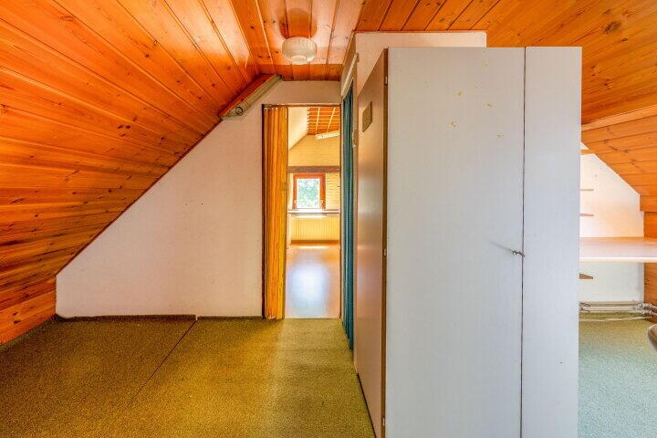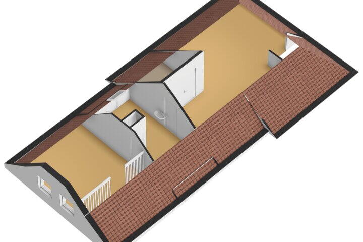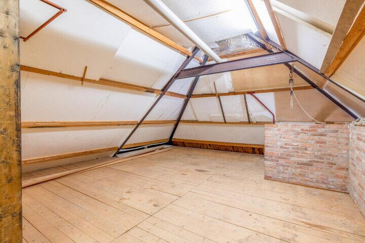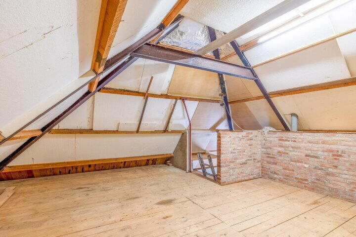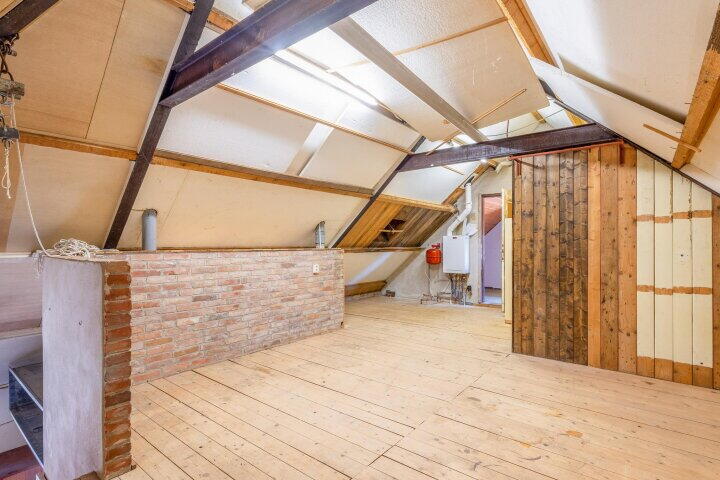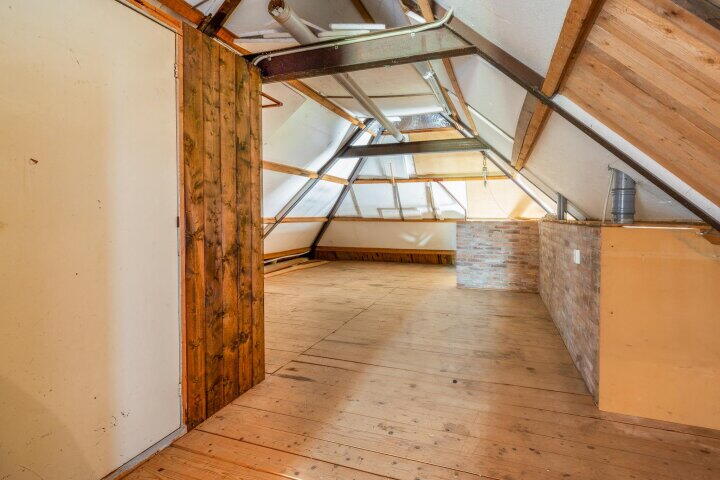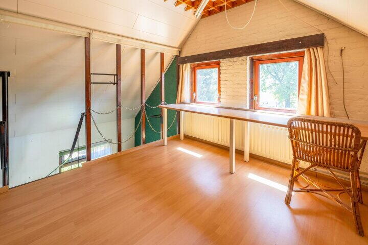 Via de wenteltrap in de woonkamer kom je op een ruime overloop met speelse vide en 2 ramen. Aansluitend is een tussenruimte voorzien van dakraam en wastafel. Vanuit hier is er toegang tot de royale zolder.. Verder vind je hier ook de CV opstelling. De zolder is ook bereikbaar via een ladder vanuit de wasruimte op de begane grond.